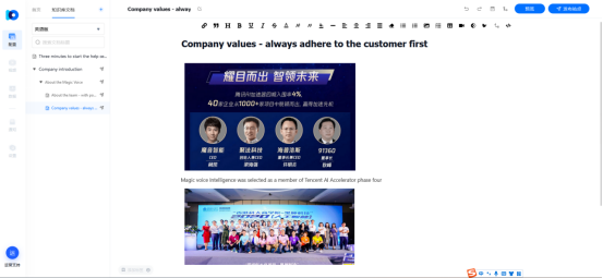 从主版本同步文档,选中需要操作的子版本,然后选择【从主版本同步文档】,即可实现将主版本的内容一键同步到子版本。对于公司介绍、获得奖项、荣誉资质等内容,主版本完成更新后,同步文档即可实现统一管理更新内容。针对不同服务客群或不同语言完成便捷更新操作。无需维护多套知识库内容。
